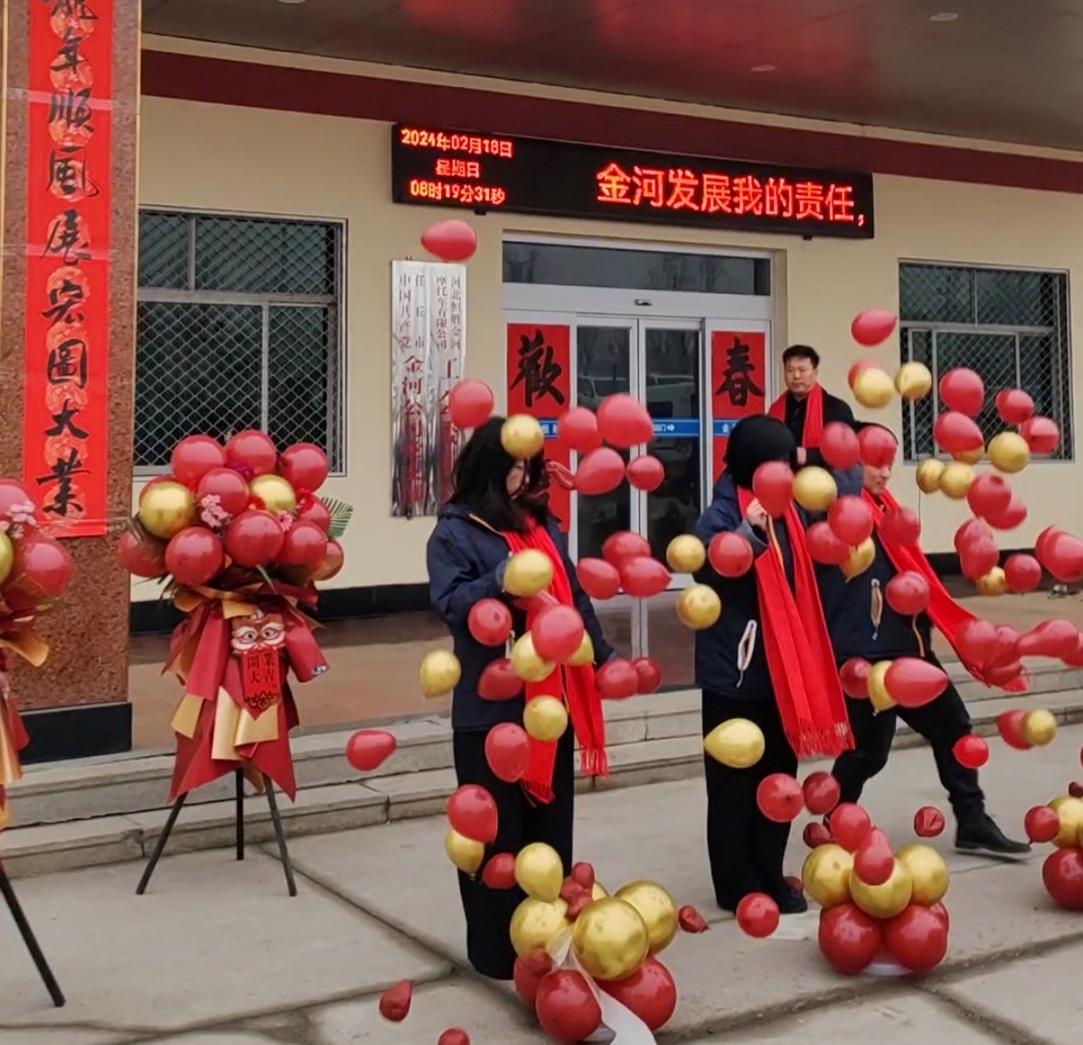 2月18日上午8:18分是開業(yè)吉日,金河公司在這吉慶的時刻開業(yè)啦!喜慶的開業(yè)花藍與地爆球擺放于公司大廳門前,員工整齊站隊,期待氣球放飛天空的精彩一幕,公司黨支部書記、總經(jīng)理陳文通致開業(yè)詞,在全體員工見證下,十位中干一起刺爆地爆球,頓時間氣球滿天,美麗致極,放飛夢想,再創(chuàng)輝煌!與此同時吸引眼球的舞獅表演隨之開始啦!多彩耀眼的龍獅活潑奔騰,在人潮中穿梭,激情四射;雄獅與員工互動,員工紛紛摸獅子頭,同時我們的巨人也手捧”金河星,興天下“現(xiàn)場助興,歡呼吶喊聲與掌聲不斷,雄獅口吐對聯(lián)祝賀公司開業(yè)大吉,財源廣進,萬事順意,陳總和管理者與雄師合影留念。龍騰虎躍,龍馬精神,龍年大吉,祝金河公司2024年蒸蒸日上,業(yè)績翻番,順風(fēng)順?biāo)豁槹夙槪?/p>